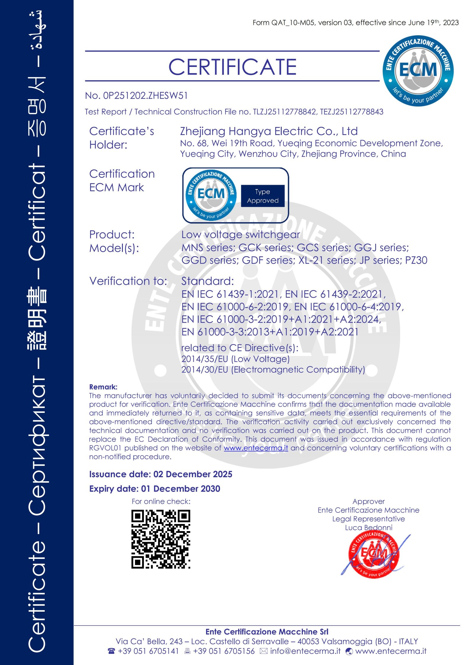 Our Certificate