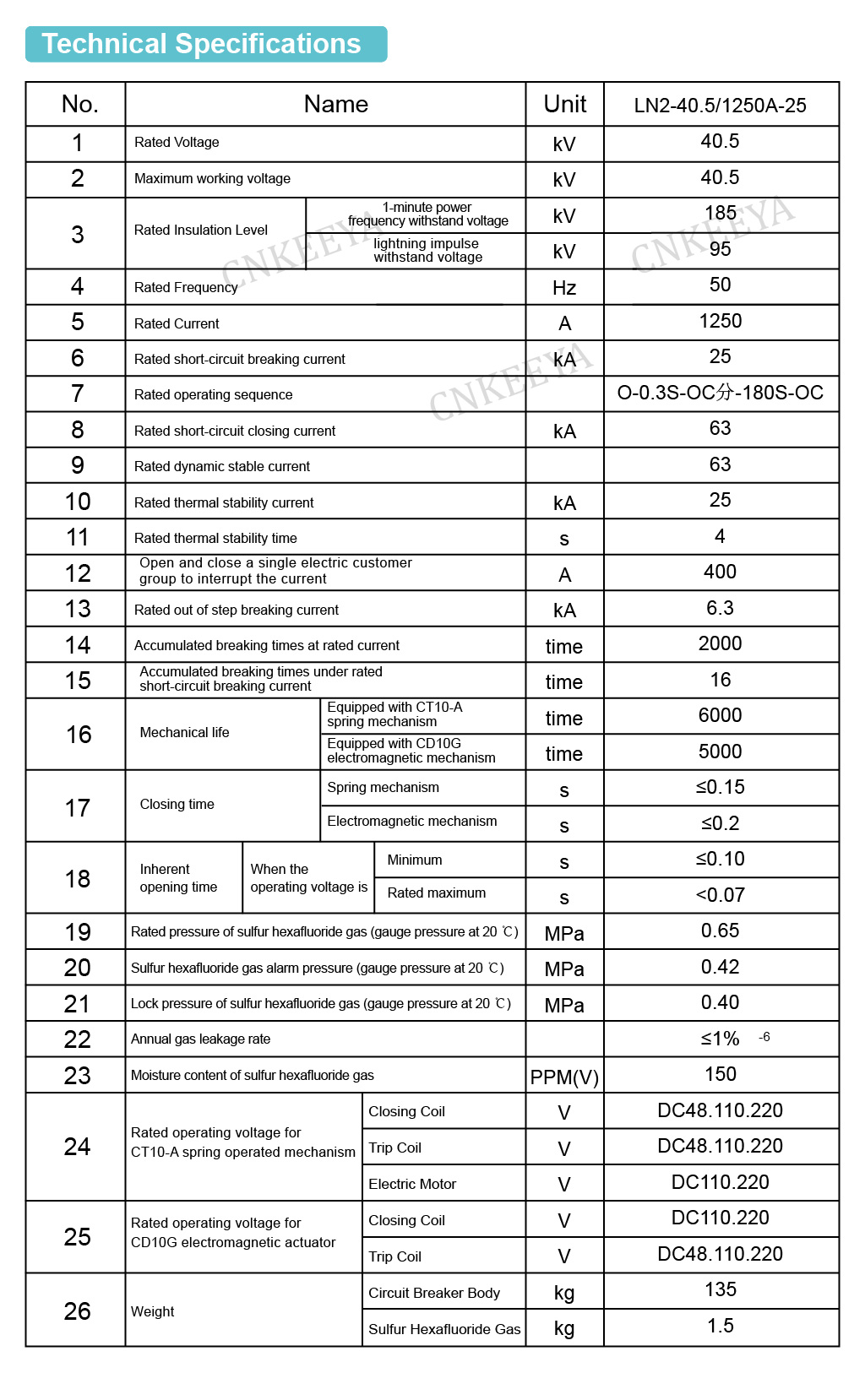The LN2-40.5 model can be equipped with a CT10-A spring operated mechanism or a CD10G electromagnetic operated mechanism.